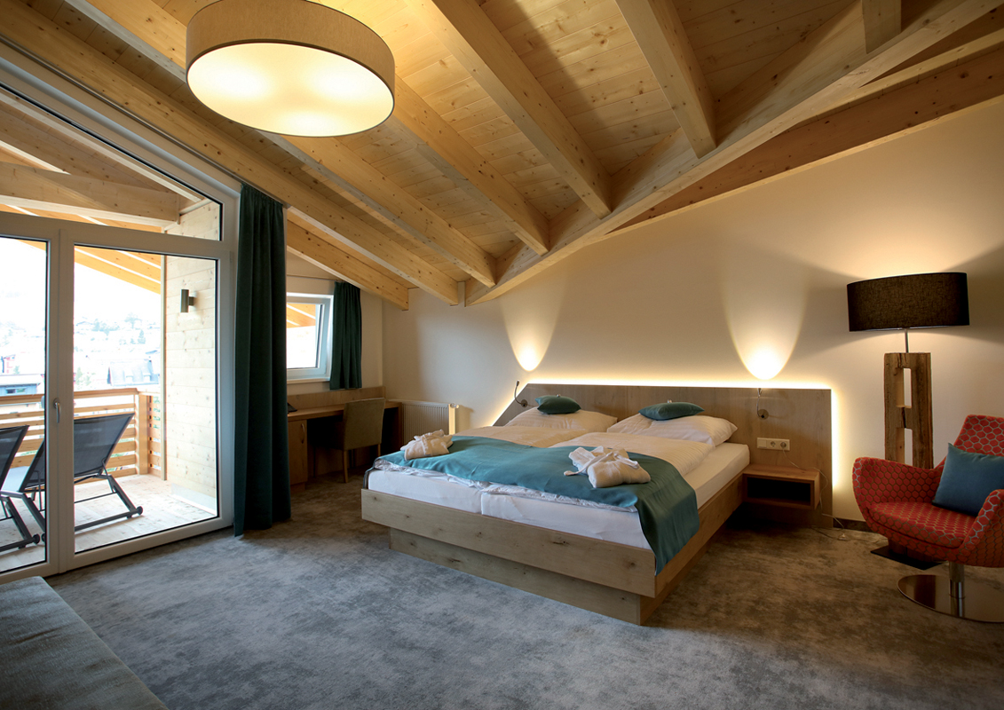 35 m² - pokoj s manželskou postelí a případně rozkládacím gaučem až pro 2 osoby, sociální zařízení s vanou či sprchou, balkon; pokoje jsou vždy v nové části hotelu přistavěné v roce 2016