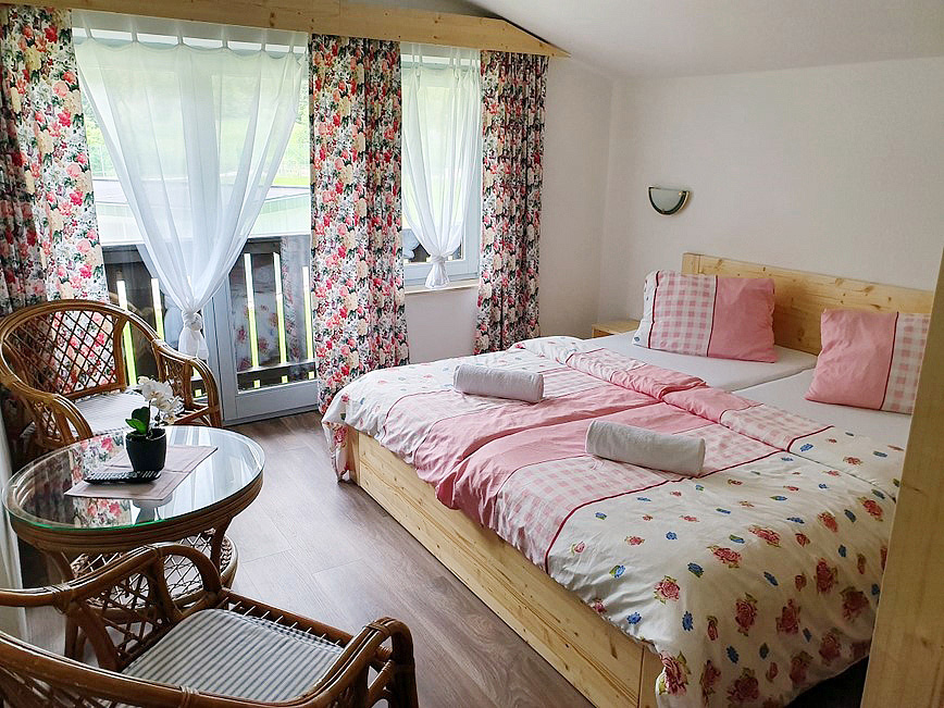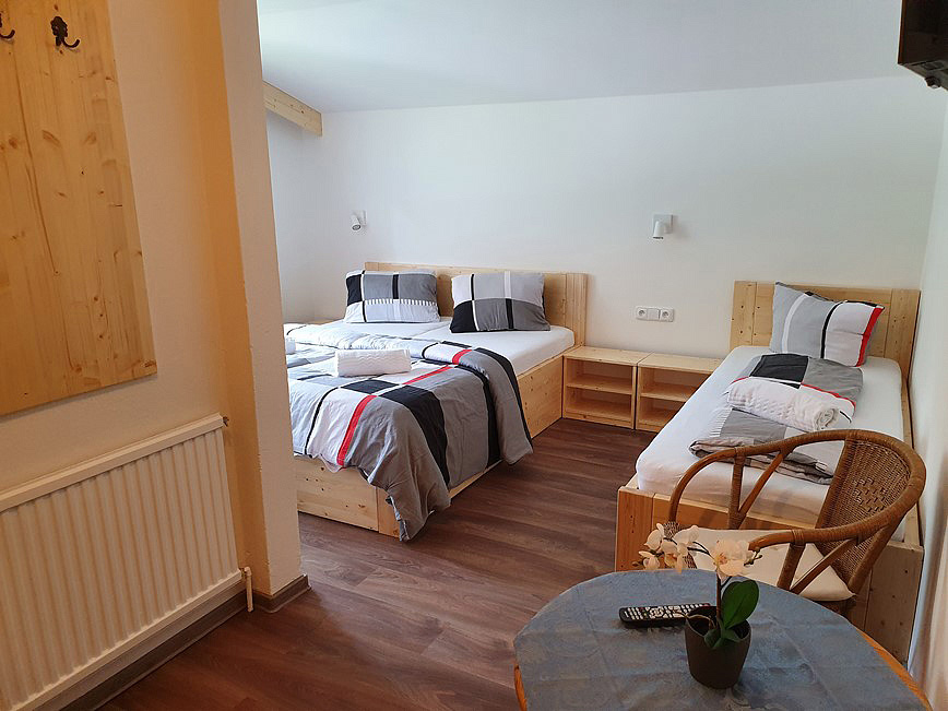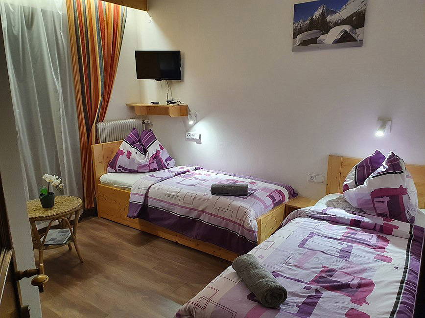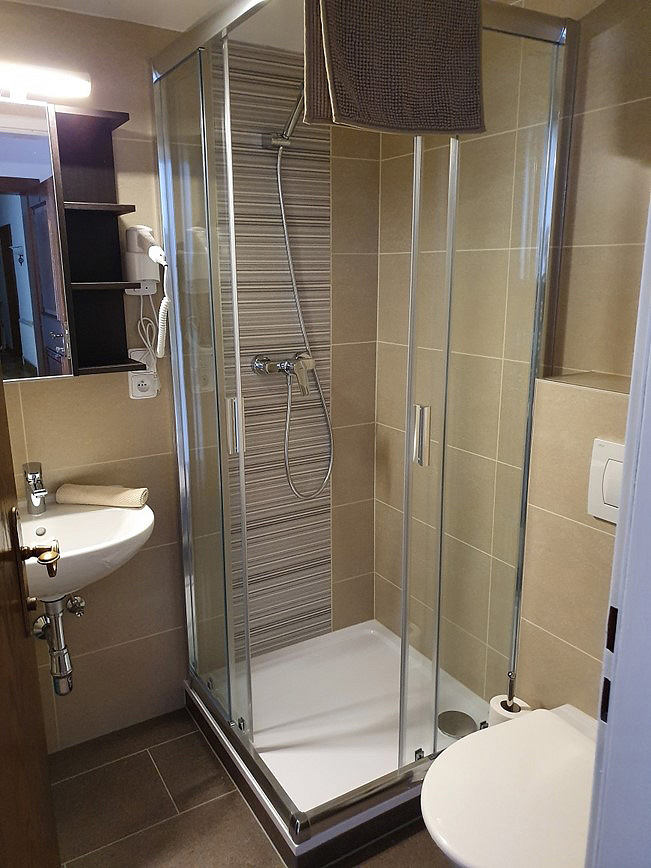 pokoj s manželskou postelí či 1 samosatným lůžkem, max. obsazení 1 osobou, sociální zařízení