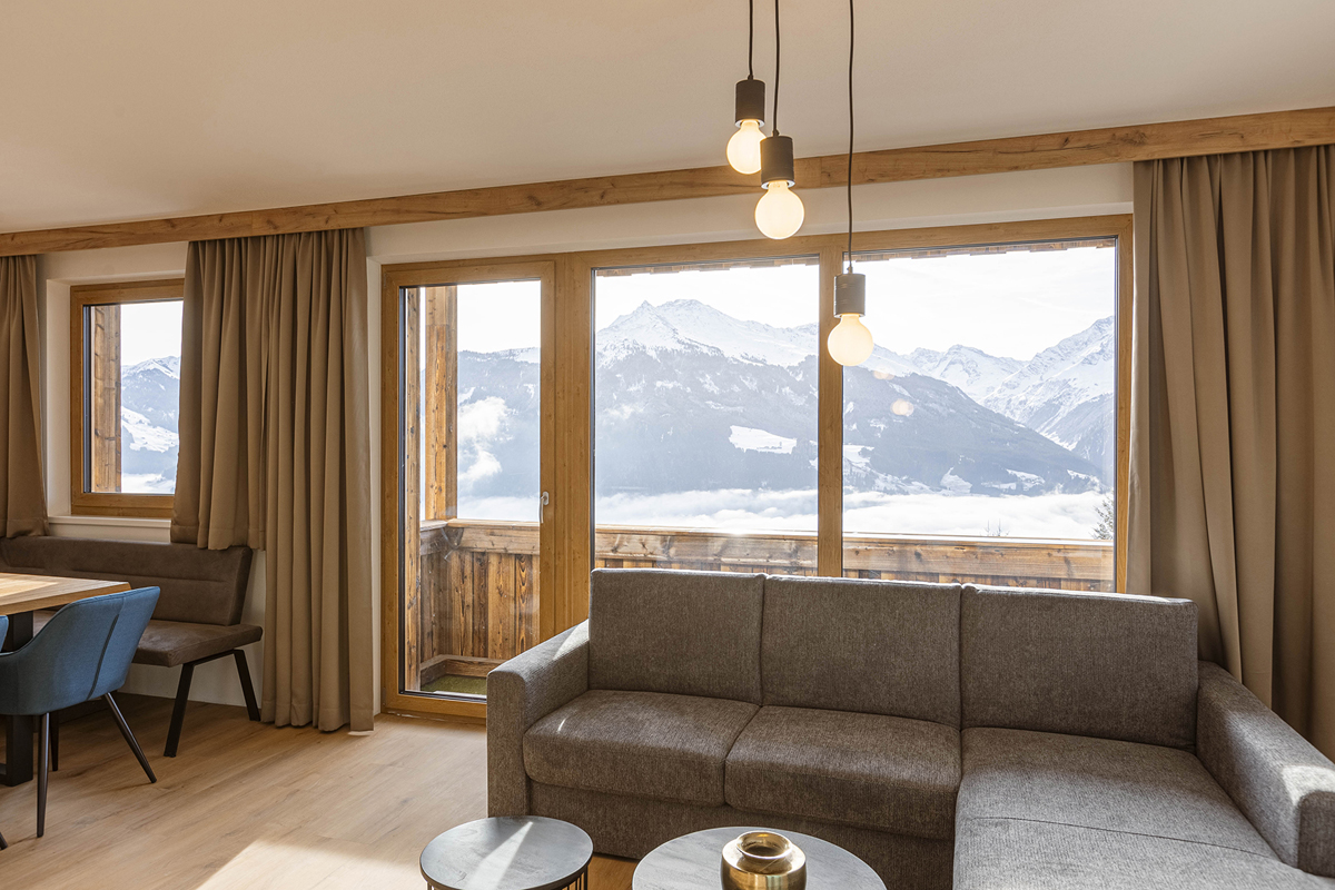 luxusní apartmánové ubytování s výhledy do údolí vysoko nad městem Mittersill