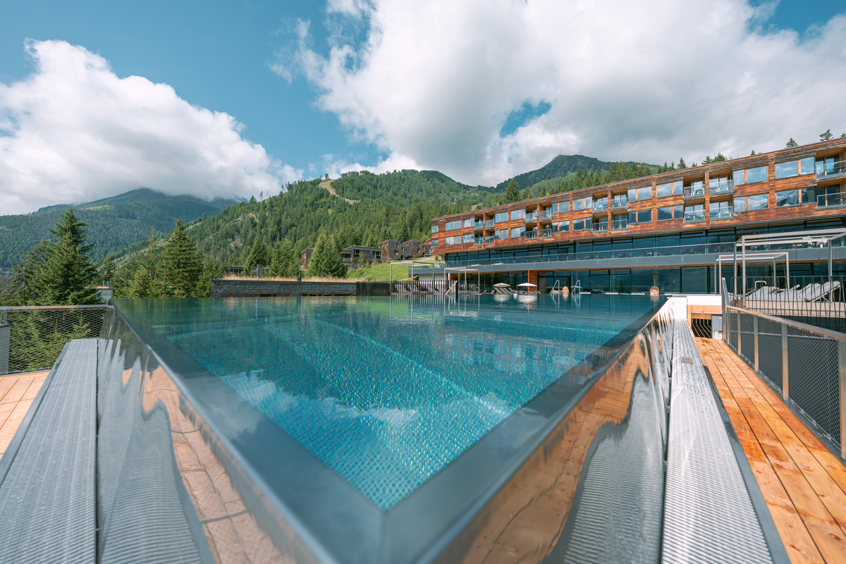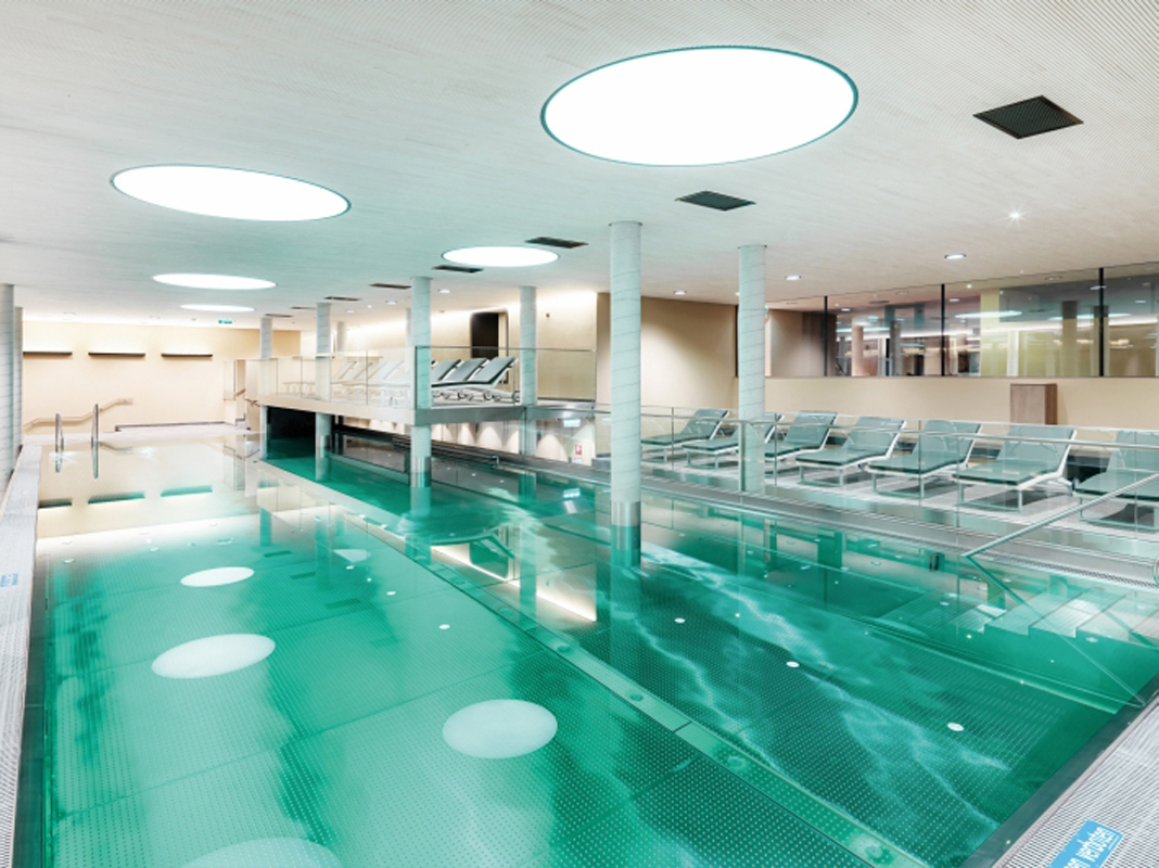 wellness zóna o rozloze 3.000 m² - vnitřní a venkovní vyhřívaný bazén, bazén s dětským bazénkem a skluzavkou, finská sauna#, biosauna#, pára#, infrakabina#, multifunkční sprcha#, horizontální solárium#*, relaxační koutek# s lehátky, masáže#*, kosmetické služby#*, posilovna#; služby označené # mohou využívat osoby od 16 let
