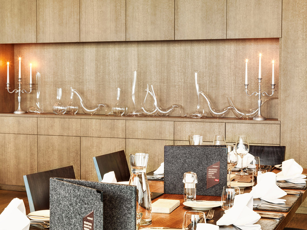 recepce / velká lobby, restaurace vyhrazená pro hotelové hosty, stylová restaurace, jídelna pro snídaně, bar, bohatá vinotéka, společenská místnost, seminární místnost, miniklub (od 3 do 10 let; denně 9.00 - 21.00, s výjimkou sobot), uvítací přípitek, wi-fi připojení k internetu, úschovna lyží a lyžařských bot, prostor pro úschovu zavazadel, výtah, vyhrazené parkoviště, garážová stání (1 auto / pokoj), nabíjecí stanice* elektroaut, obchod se sportovními potřebami, kadeřnictví*