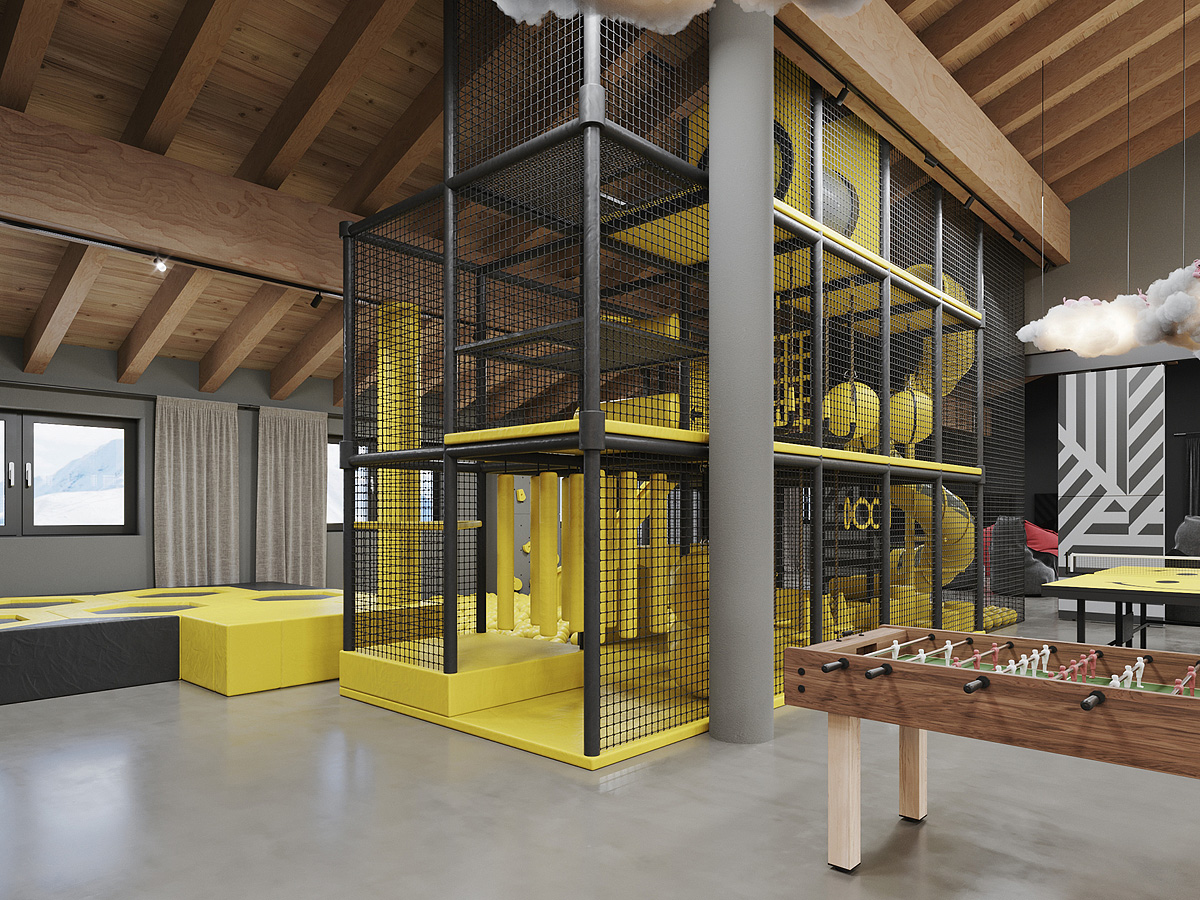 recepce / lobby, restaurace vyhrazená pro hotelové hosty, á la carte restaurace, bar na střeše, vinný sklípek, wi-fi připojení k internetu, dětský koutek, dětská herna, dětské divadlo, videohry*, úschovna lyží a lyžařských bot, výtah, vyhrazené parkoviště, garážová stání (počet míst omezen); půjčovna lyží, hotelový shuttle bus*