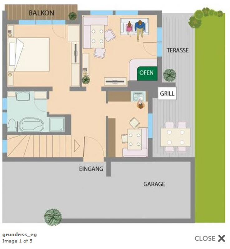 140 m² - 1. podlaží domu: ložnice s manželskou postelí, obývací pokoj s rozkládacím gaučem pro 2 osoby, samostatná kuchyň, sociální zařízení s vanou, terasa; 2.podlaží domu: 1 ložnice s manželskou postelí, ložnice s manželskou postelí a 2 samostatnými lůžky, sociální zařízení, oddělené WC, balkon