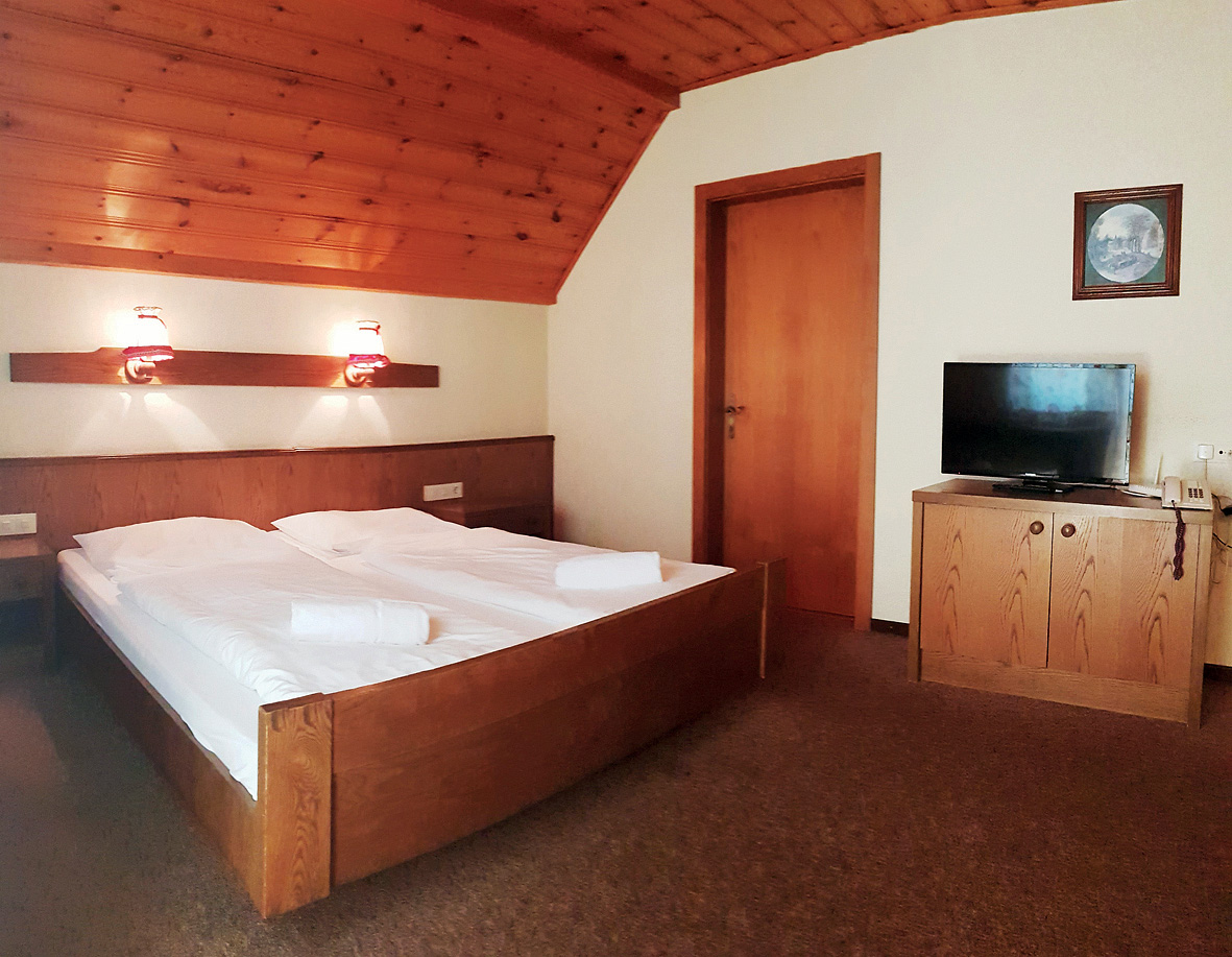 Standard 2 - 17 m² - pokoj s manželskou postelí, sociální zařízení se sprchou či vanou; infant nad rámec maximální obsazenosti pokoje není povolen