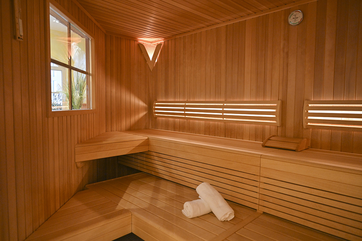 bazén 12 x 6 m, finská sauna#, bio sauna#, pára#, caldarium#, Kneippův chodník#, infrakabina#, relaxační koutek s lehátky#, masáže*, posilovna, stolní fotbal*; služby označené # jsou pro děti přístupné až od 14 let