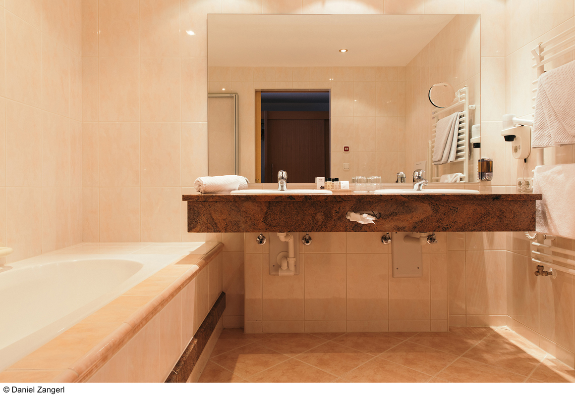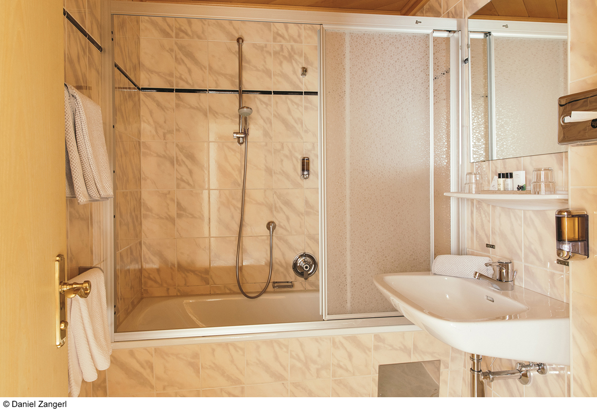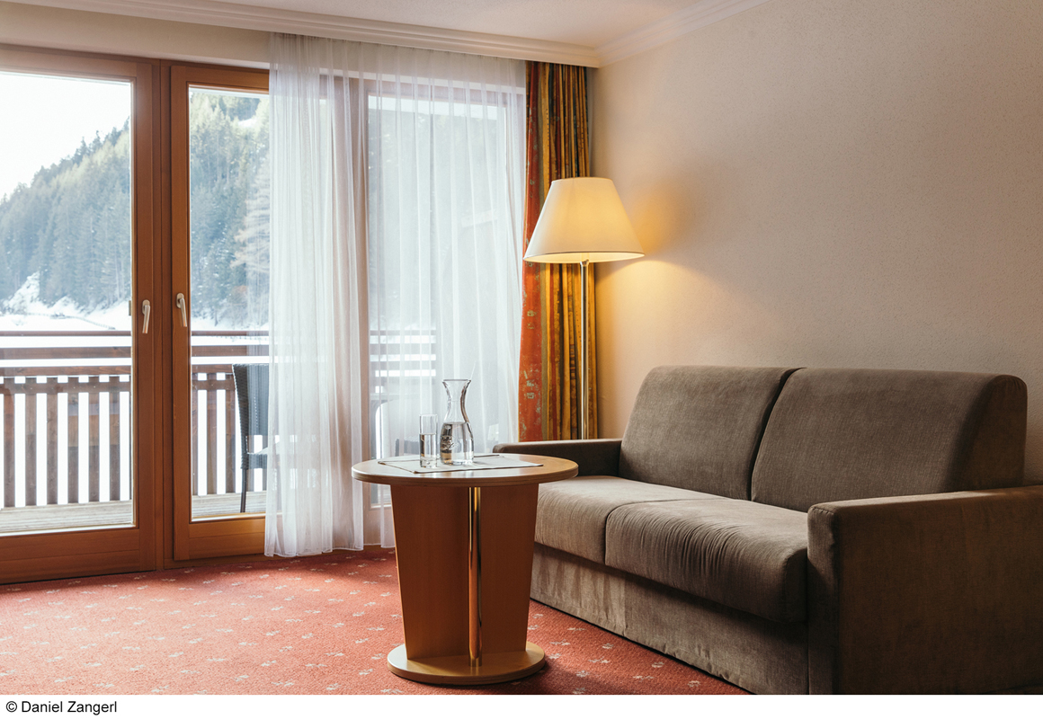 34 m² - pokoj s manželskou postelí a rozkládacím gaučem pro 1 dospělou osobu a 1 dítě do nedovršených 15 let či 2 děti do nedovršených 15 let, sociální zařízení s vanou, balkon či terasa zpravidla s výhledem na hory