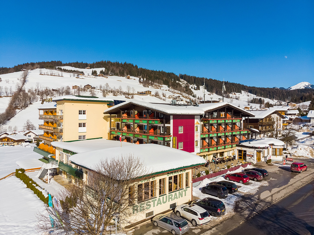 hotel s velkým bazénem a polohou v těsné blízkosti lanovky menšího skiareálu Niederau a nedaleko od Auffachu propojeného s celým Alpbachtalem