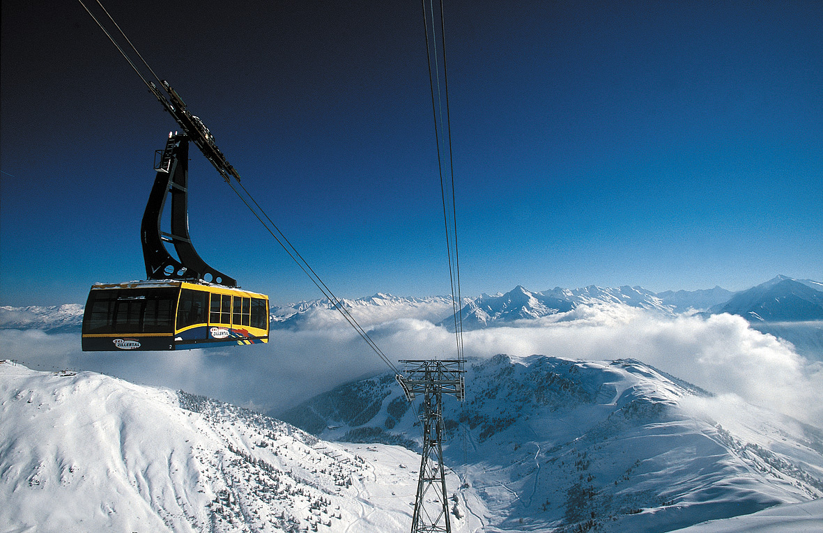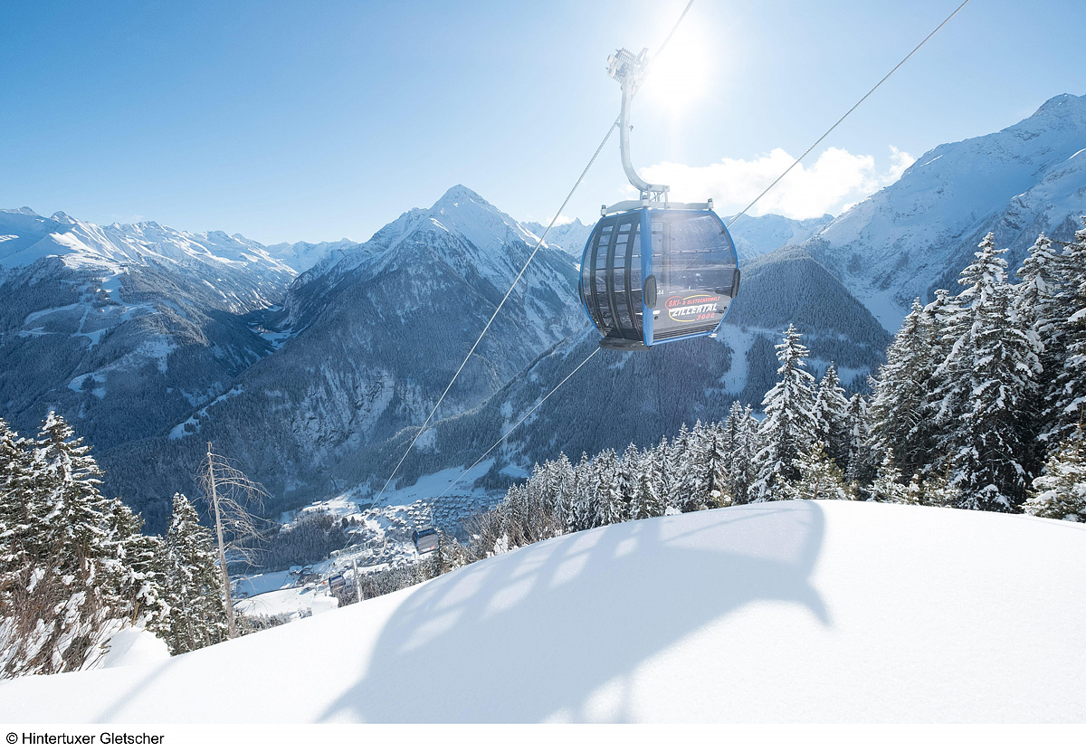 Kufstein, dálniční sjezd Zillertal, Fügen, Kaltenbach, Hippach, Mayrhofen, Finkenberg, Hintertux