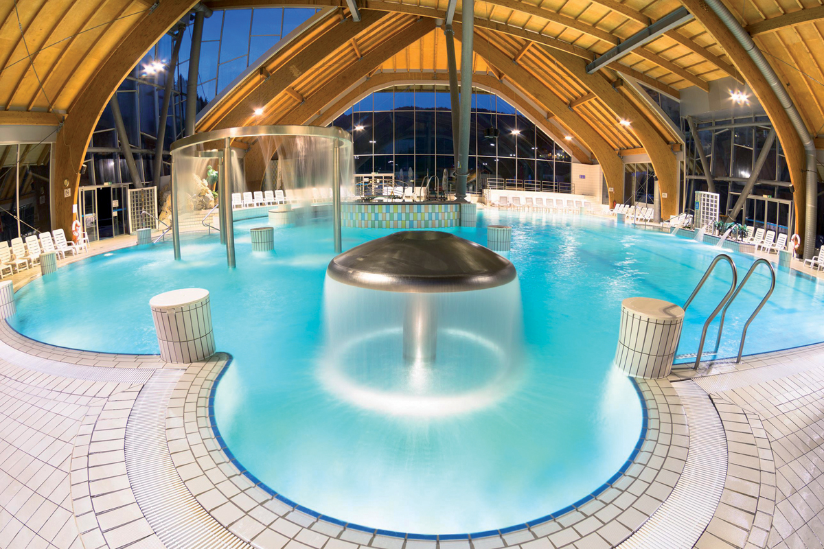 vnitřní termální bazén# s teplotou 32° až 36°C, vířivkou# až pro 10 osob a lehátky#, dětský bazén#, sauna*, pára*, relaxační koutek* s lehátky, fontána na led*, bazének* se studenou vodou, Kneippův chodník*, víceúčelové hřiště; služby označené # mají 2x denně vstup zahrnut v ceně pobytu