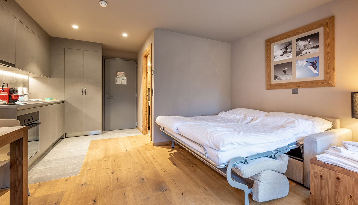 34 až 41 m² - 1 ložnice se 2 samostatnými lůžky, obývací pokoj s kuchyňským koutem a rozkládacím gaučem (šíře 160 cm) pro 2 osoby, sociální zařízení